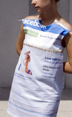 Wonderful dress made by Romanian fashion designer Lana Dumitru looks like a Facebook profile page.